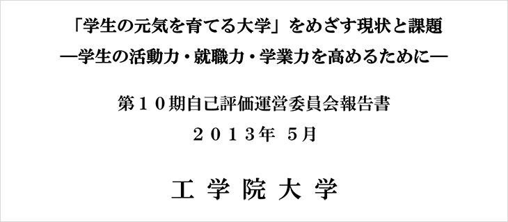 Home 教育の質保証 10期自己評価運営委員会報告書 10期自己評価運営委員会報告書 教育の質保証 外部評価委員会総括 自己点検・評価報告書 自己評価運営委員会報告書 工学院大学の現状と課題 まえがき・目次・はじめに [982KB] 1章 学生の元気ということ、なぜそれが求められているか [675KB] 2章 これまでの本学の取り組み [895KB] 3章 本学学生の現状とおかれている環境 [5.27MB] 4章 他大学での取り組みの事例 [2.67MB] 5章 大学として何ができるか [2.92MB] 6章 おわりに ~学生諸君に期待と呼びかけ~ [783KB] 付録 [4.94MB] 参考資料 第1章関係 [1.02MB] 第2章関係 [4.39MB] 第3章関係 [7.74MB] 第4章関係 [12.5MB] 第5章関係 [1.29MB] 教育の質保証 外部評価委員会総括 自己点検・評価報告書 自己評価運営委員会報告書 工学院大学の現状と課題