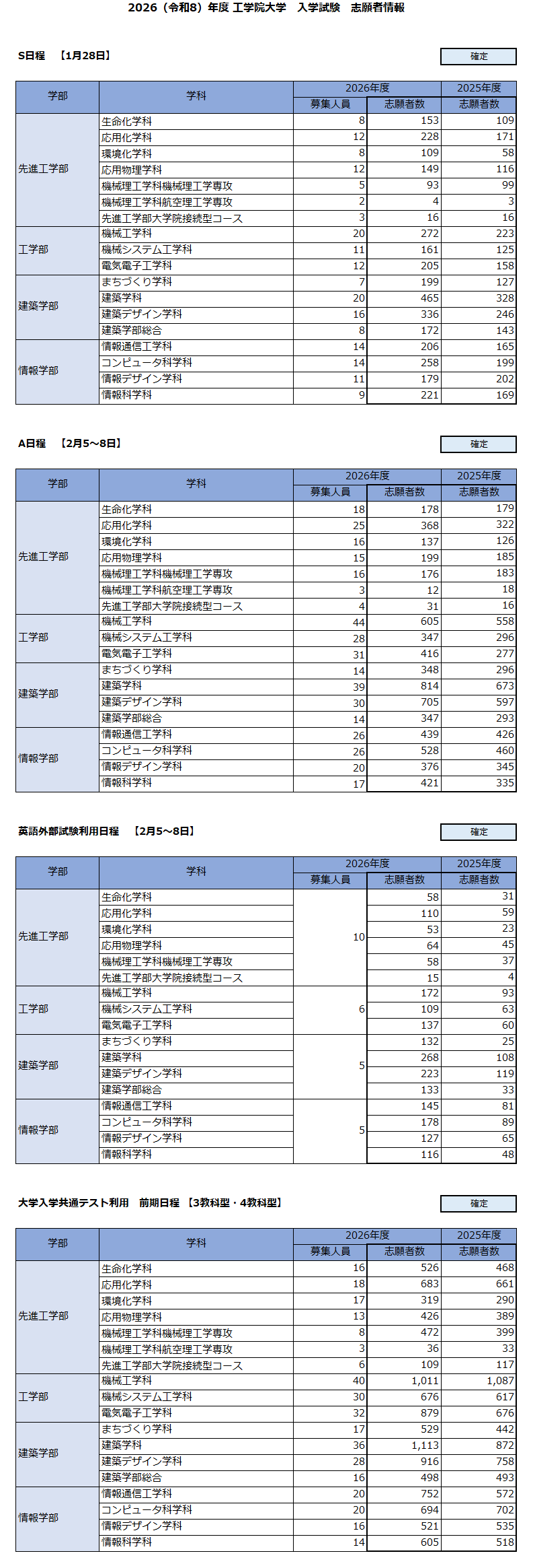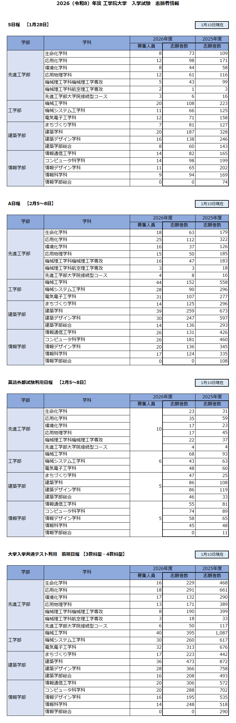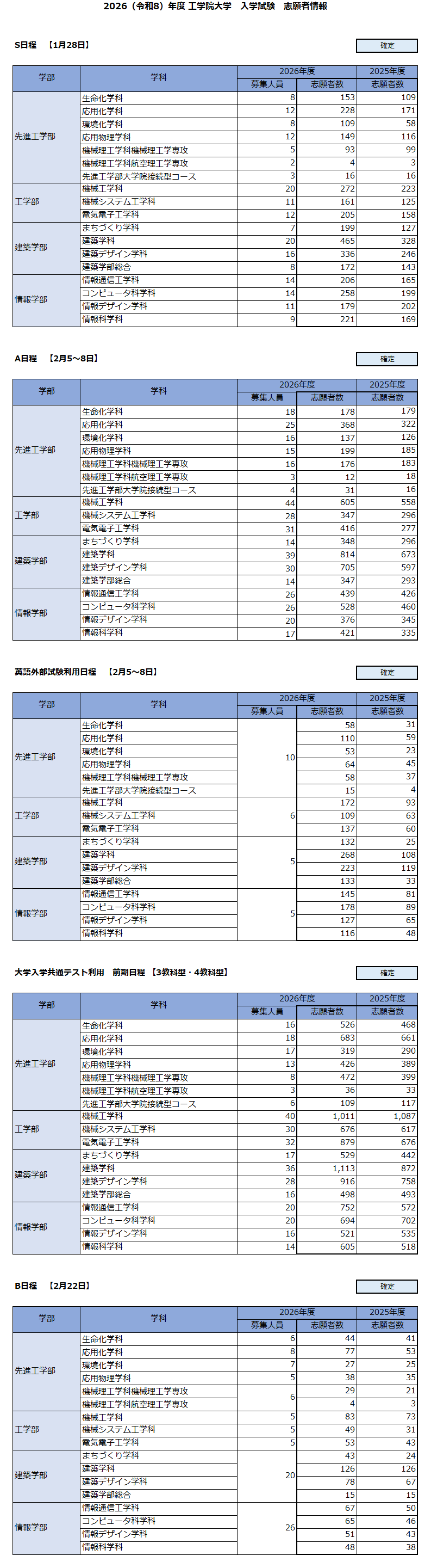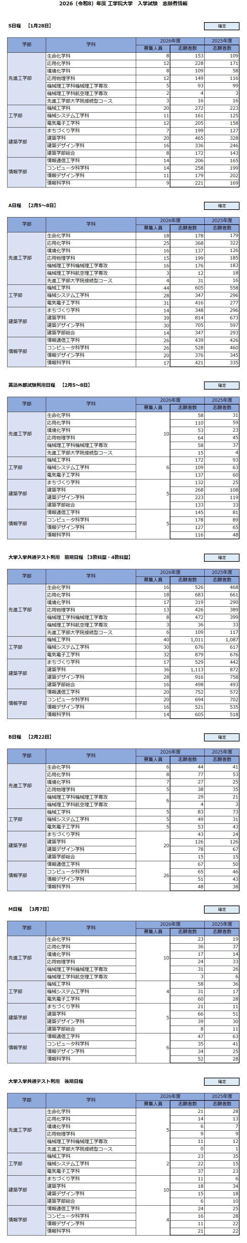 2026(令和8)年度 工学院大学 入学試験 志願者情報