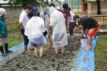 練り返しに参加した学生たちからは、「とても貴重な経験ができた」「藁や土の塊が足の裏に当たり少し痛かったときもあったが、とても楽しかった」「自分たちで作った土で壁を塗るのが楽しみだ」などの声が寄せられました。