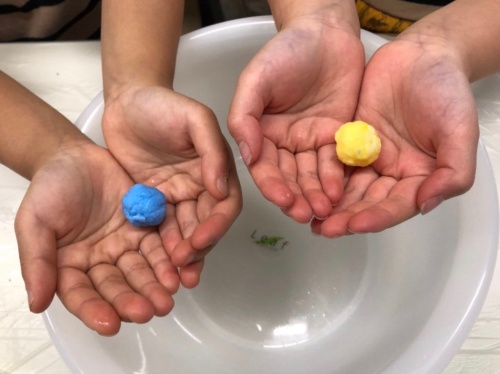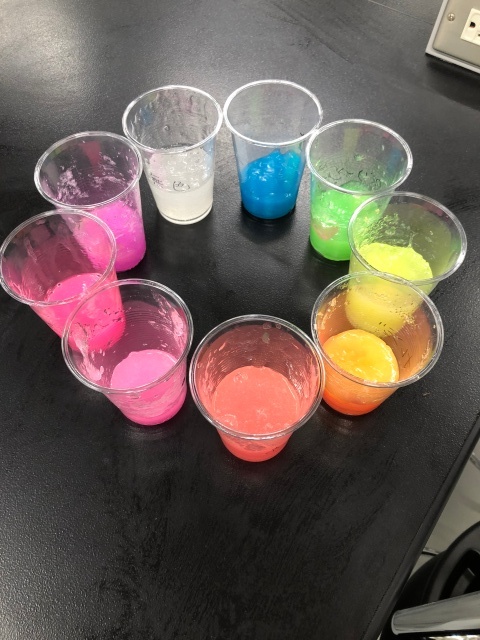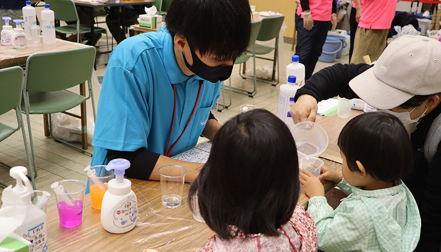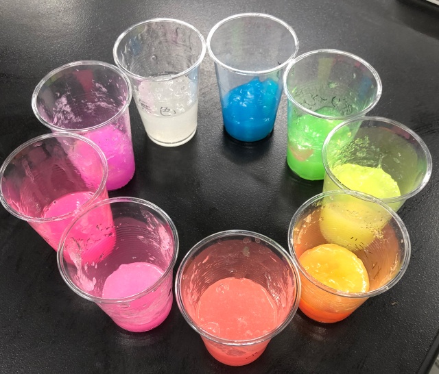 今年度も手作りスライムを実施しましたが、今回は、ノーマル、ふわふわ、香り付きスライムの3種類を行いました。