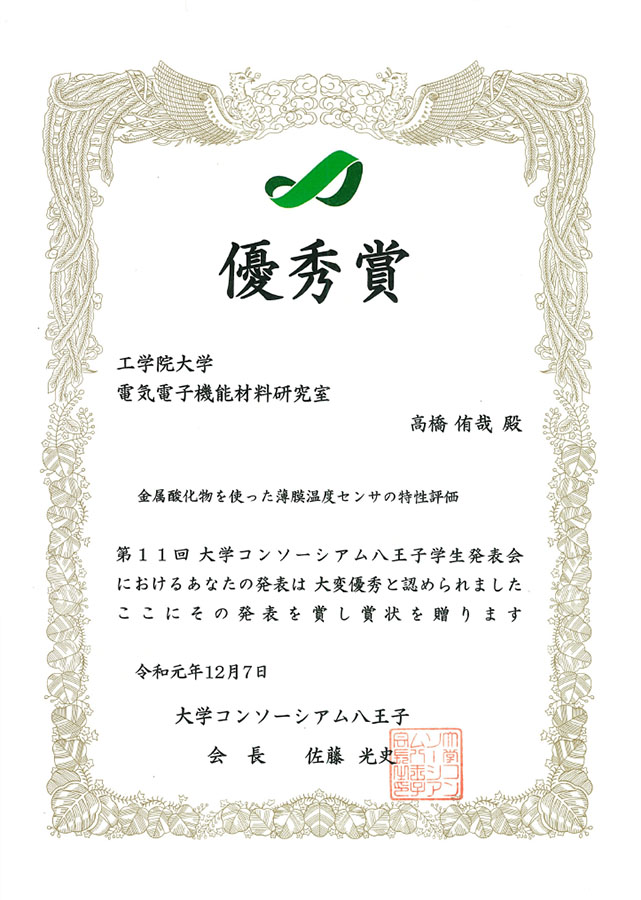 電気電子工学科 松本幸祐さんが大学コンソーシアム八王子学生発表会で準優秀賞を受賞