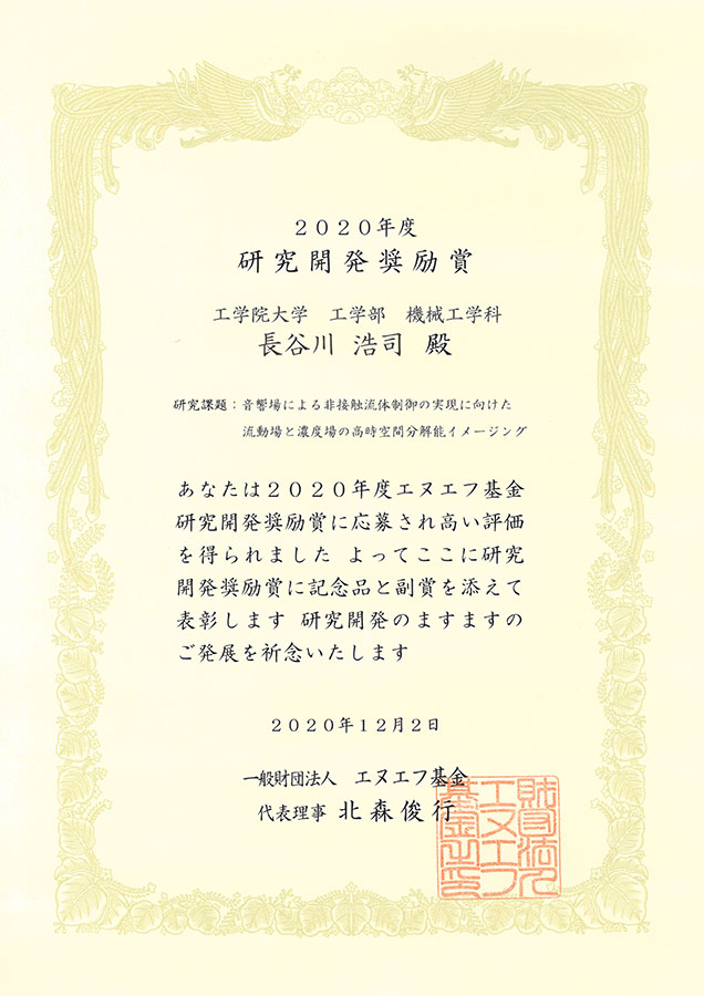 伊藤慎一郎学長(機械工学科教授)が、日本機械学会流体工学部門賞を受賞