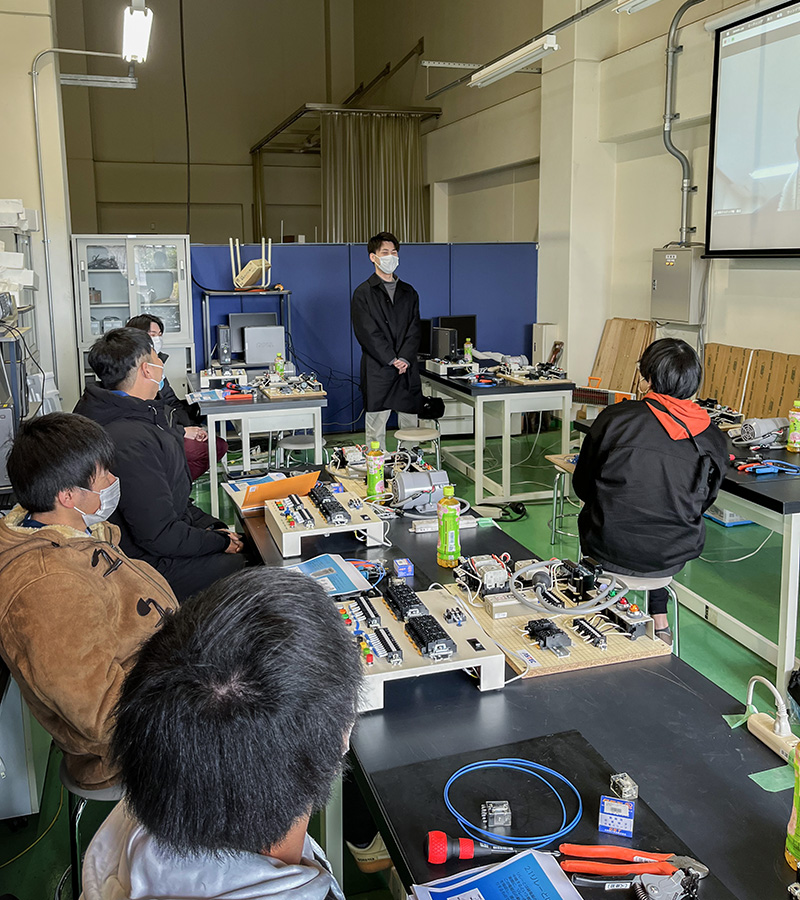 電気電子工学科新1年生授業でフォスター電機株式会社 フォステクス・カンパニーと連携した授業を展開