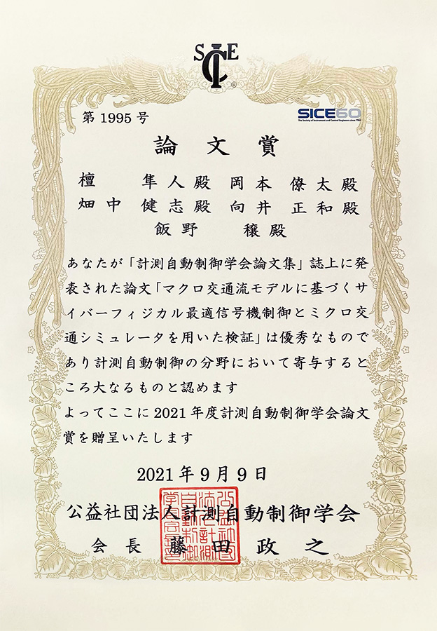電気電子工学科 中村彩那さんが計測自動制御学会でSICE優秀学生賞を受賞