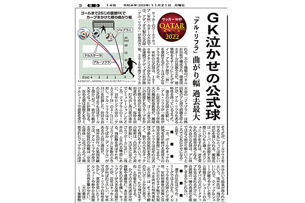 産経新聞で瀬尾和哉教授(機械工学科)がW杯公式球の特性を解説