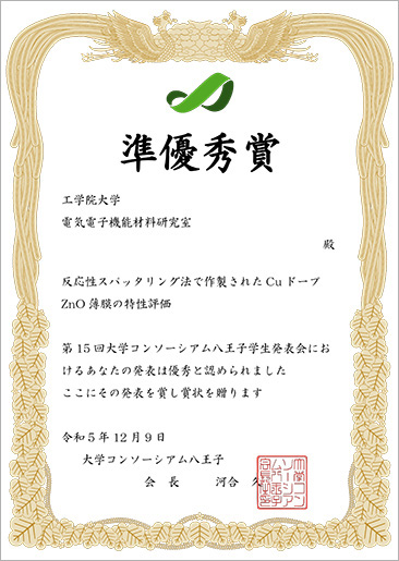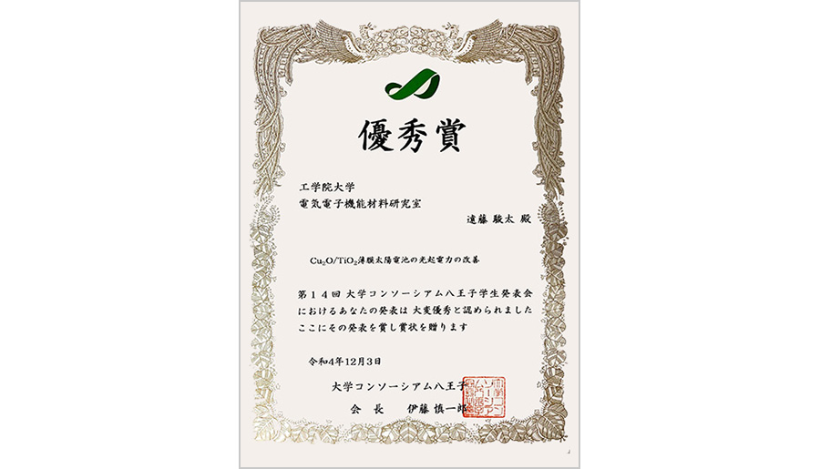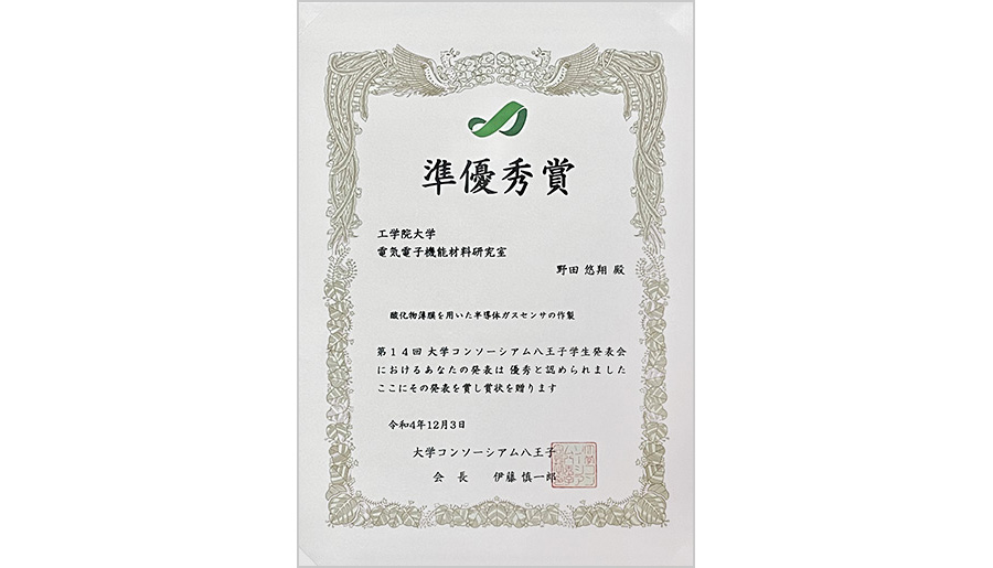 電気電子工学科 横川稔弘さんが大学コンソーシアム八王子学生発表会で準優秀賞を受賞