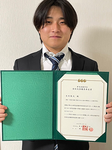 電気電子工学科 高木敬大さんが電気設備学会全国大会で優秀発表賞を受賞
