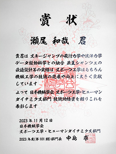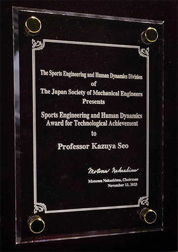 瀬尾和哉教授(機械工学科)がスポーツ工学・ヒューマンダイナミクス部門で技術功績賞を受賞