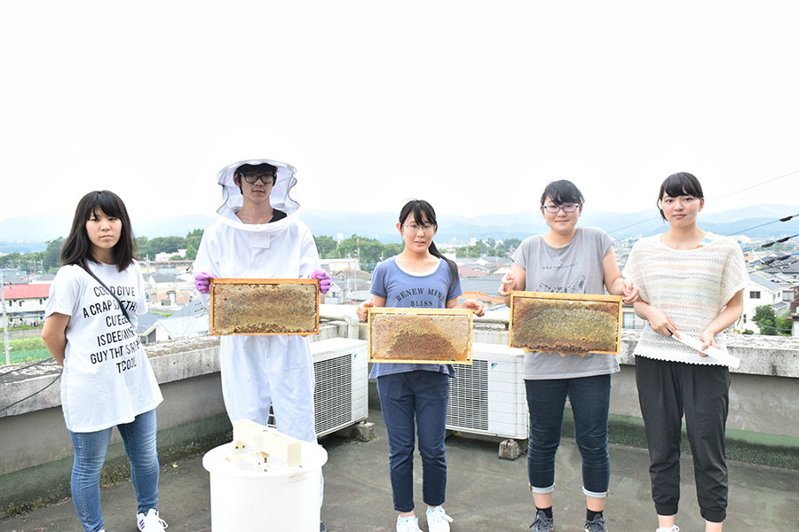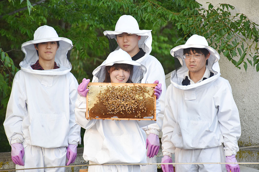 みつばちプロジェクトは、八王子キャンパスで養蜂・採蜜を行い、蜂蜜販売を目指している学生プロジェクトです。
