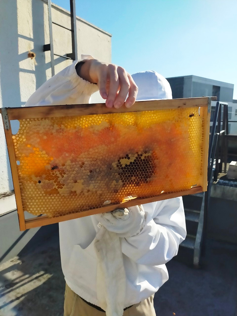 - 初夏~8月にかけて八王子キャンパスで採取したハチミツ入り