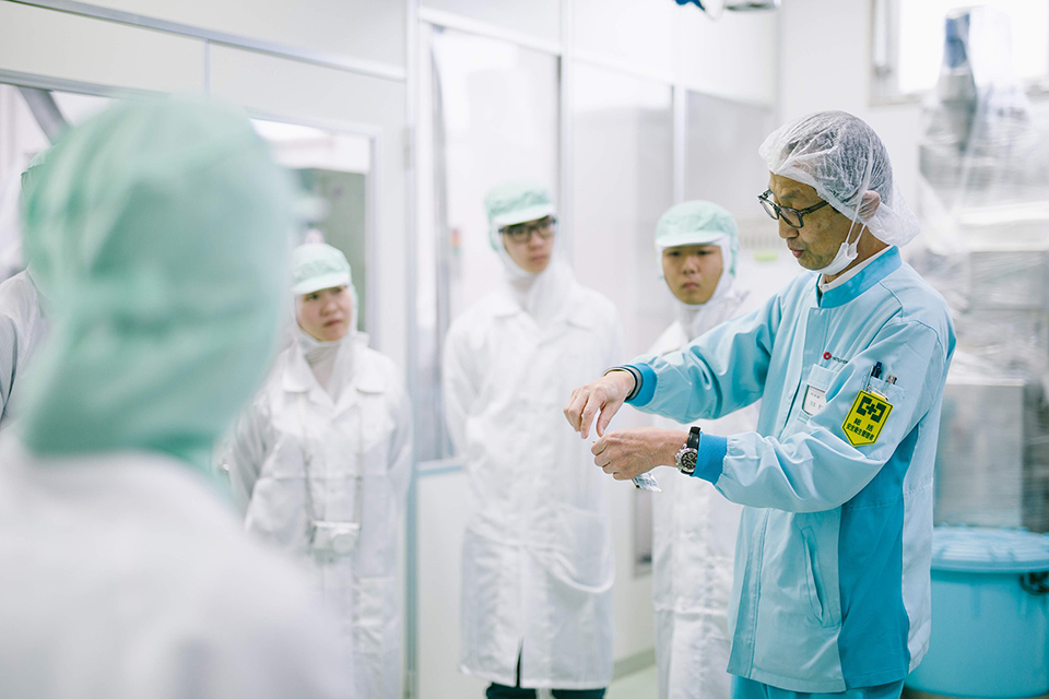 八重椿本舗の方々にご協力いただき、はちみつ入り入浴料「KUTE Honey In The Bath」の製造に1月から着手してきましたが、この日はまさにその入浴料が完成し、袋詰めされる日でした。工場の方々のご厚意で、入浴料を製造し袋詰めされるまでの工程を学ばせていただきました。入浴料の製造工程、成分分析、品質管理、パウチ封入などについて学ぶ貴重な機会となりました。