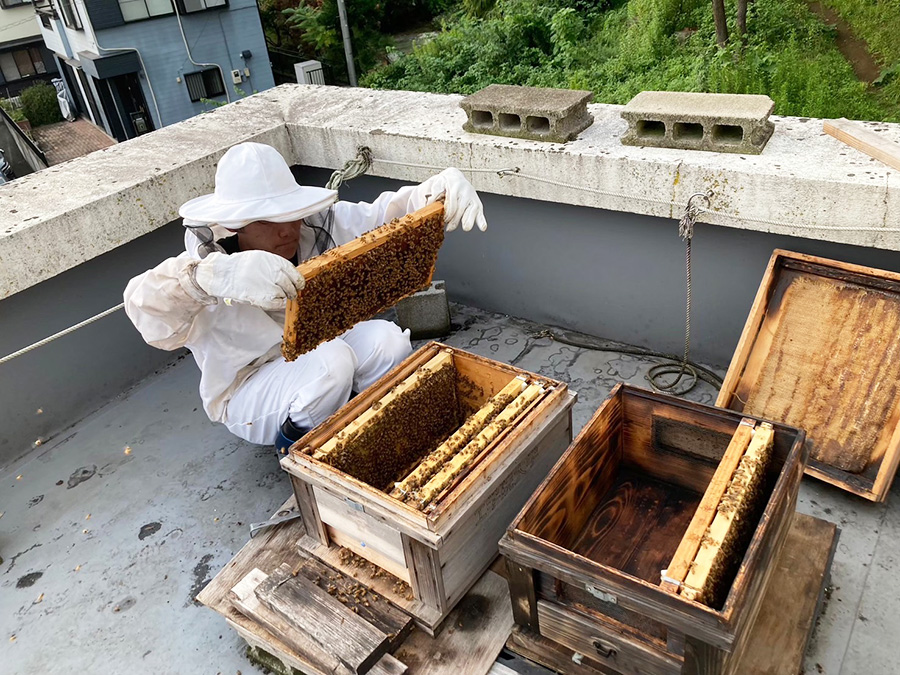 みつばちプロジェクトが新宿で蜂蜜を採取