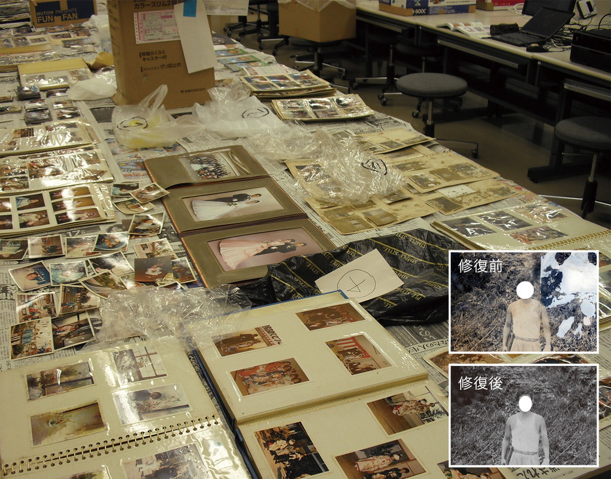 メンバーは学生や教職員、任意で参加している社会人など、これまでに183名が参加。写真修復可能かどうか確認したものは26,128枚。延べ活動時間は約4,200時間にもなりました。修復可能な写真をすべて返却し、2016年、2月をもち活動に幕を閉じました。