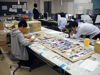 活動当初は、写真の修復作業についてのフローもノウハウも丸っきり何もない状態から試行錯誤しながら始まりました。被災地から送られてくる写真の洗い方、写真をスキャンし、撮影を行い、修復用のデータにすることなど、さまざまな作業を試しながら手探り状態で進めました。協賛企業の方を招き、写真修復のやり方を学んで、この活動が徐々に軌道に乗り始めました。