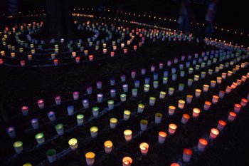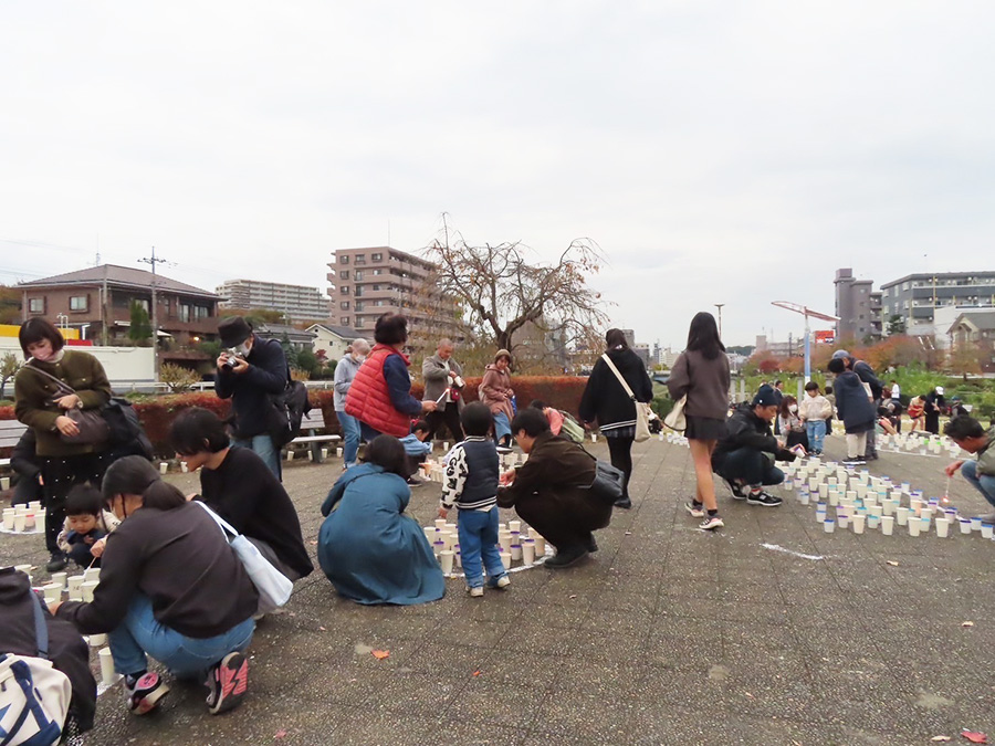 フードフェスティバルと同時に開催されたキャンドルリバーでもお手伝いをしました。色を塗った紙コップにキャンドルを入れることで幻想的な空間を作りました。