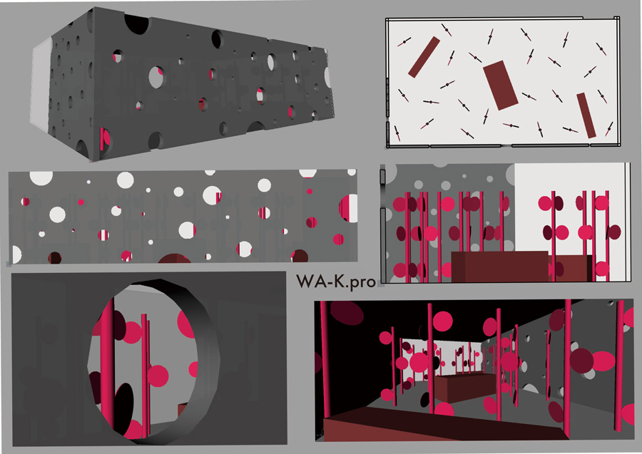 9つの班に分かれて「おもちゃ」というテーマでインスタレーション(空間デザイン)を約2か月かけて制作してきましたが、コンペの結果「遊戯と時の部屋」が優勝しました。[人の成長とおもちゃの進化]をコンセプトにした作品です。この作品を実際に制作して展示しますので、是非お越しください。