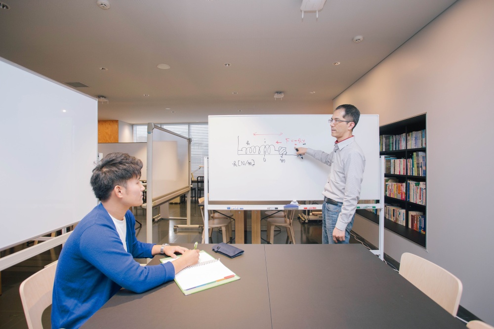 建設は、株式会社INA新建築研究所(設計)と株式会社フジタ(設計・施工)が担当し、両社ともに本学の建築学科で学んだ同級生が中心となりプロジェクトに携わりました。さらに、建築学部の塩見一郎教授(建築デザイン学科)と2016年に退職された飯島直樹氏(建築デザイン学科元教授)がインテリアデザイナーとして参画し、校舎建設では類を見ない試みとして、学生の視点に立った斬新なアイディアが随所に取り入れられています。