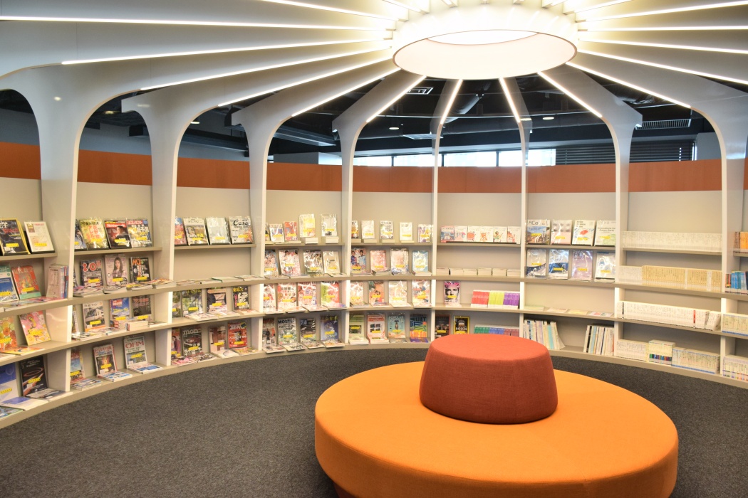 未知に対する興味を引き出すためにキーワードを軸に関連書籍が並ぶストーリー性を重視した書架に、電子ジャーナルが充実した図書館は、誰もが心地良さを実感できる新しいスタイルの図書館です。