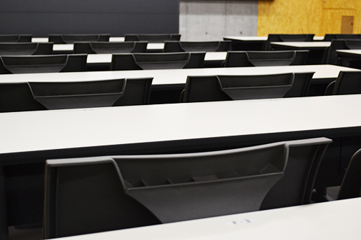 教室の一部には建築学部建築学科野部達夫教授とコトブキシーティングの共同研究が生かされた空調イスを導入。