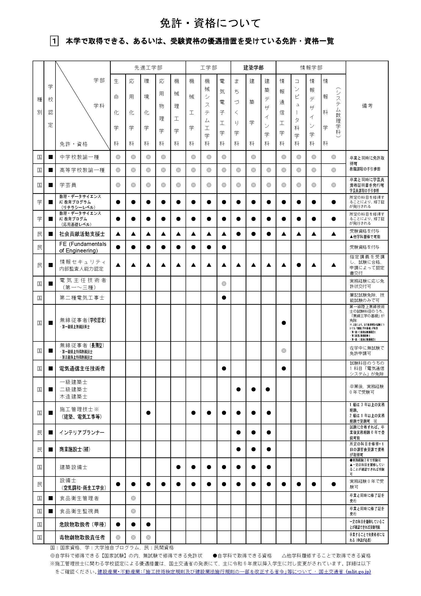 工学院大学で学ぶことにより取得できる資格は、所属する学部・学科で異なります。