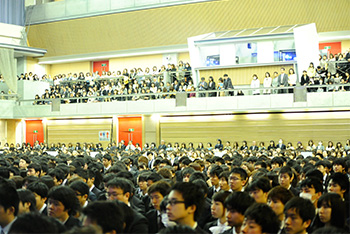 このような長い歴史をもち、かつ未来を志向する大学において学ぶことを誇りに、皆さんが自らの「無限の可能性を開花させよう」という前向きな気持ちをもち、充実した学生生活を送ることをお願いして、私の式辞と致します。