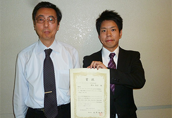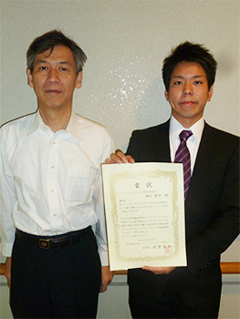 左:指導教員 水野 修 教授 右:受賞した神山さん