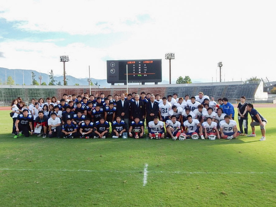 アメリカンフットボールの第28回ラッシュボウルは9月27日に山梨中銀スタジアムで行われました。関東学生エリアリーグの工学院大学クラッシュマシーンズは山梨大学ワイバーンズに26-0で快勝しました。