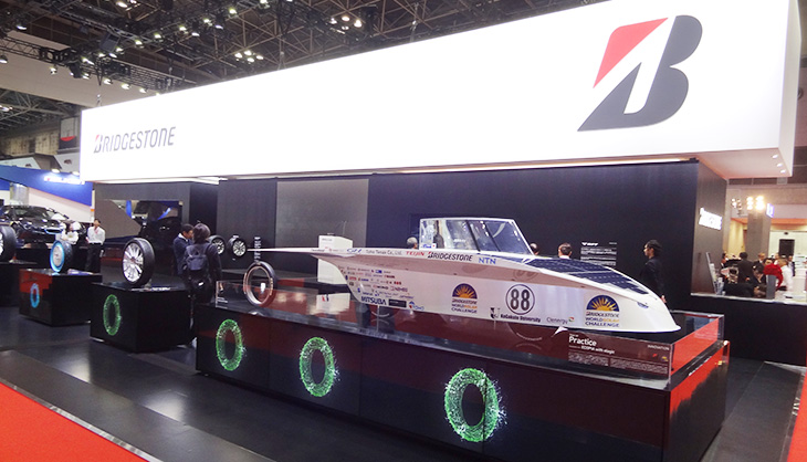 ソーラーカープロジェクトが2013年に製作した2号機[Practice]が、東京モーターショー2015のブリヂストンブースに登場しました。
