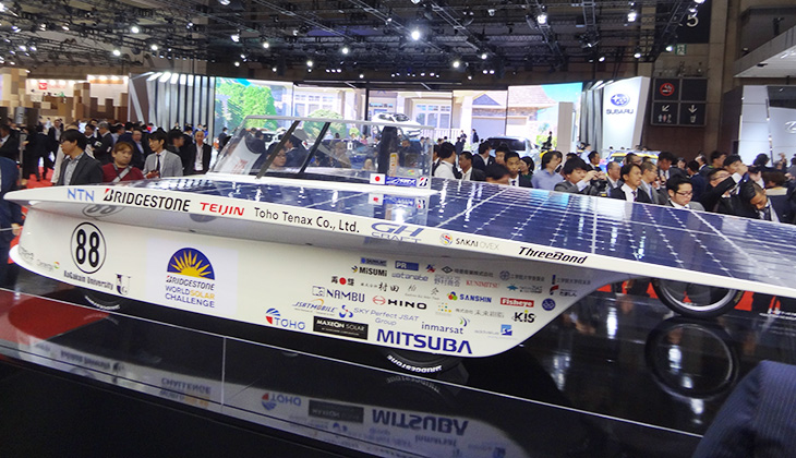 世界三大モーターショーのひとつで、前回開催時は来場者数が90万人を超えた「東京モーターショー」の大舞台で、工学院大学のソーラーカーが展示されます。