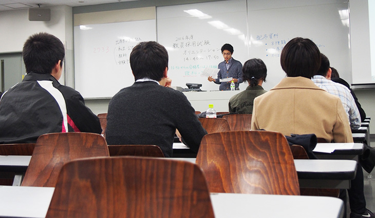 Home 2015年度のお知らせ 教員採用試験オリエンテーションを開催しました 教員採用試験オリエンテーションを開催しました 2015/12/08 シェアする 2月5日、新宿キャンパスで教職を目指す学生を対象にオリエンテーションを開催しました。当日は、本学出身で、現在、教壇に立っている現役教員の方にプレゼンを行っていただき、学生たちは熱心に耳を傾けていました。本学では、約1,000人の卒業生が全国の中学校・高等学校で教員として活躍しています。 前へ 一覧に戻る 次へ