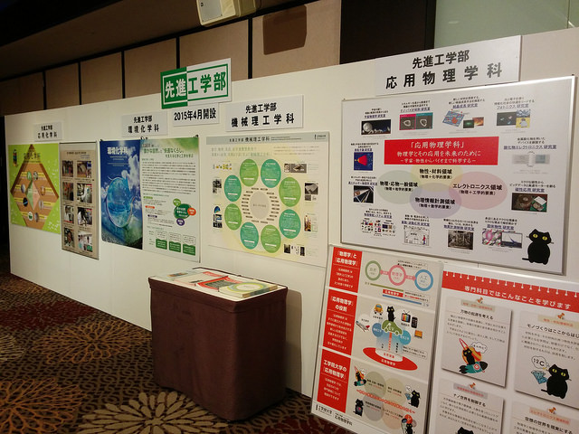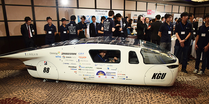 会場には、学部・学科案内やインターンシップ、ハイブリッド留学の紹介パネル等が設置され、また、今年度、世界最大級のソーラーカーレースでクラス準優勝を収めたソーラーカープロジェクトが製作した3号機【OWL】が展示され、本学をより良く理解いただくための工夫が施されました。会場では、出席者間の情報交換が活発に行われました。