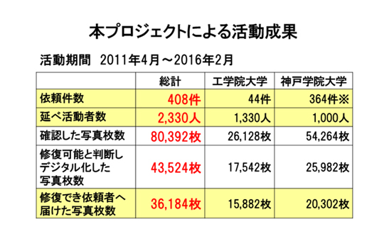 実際に写真修復を手伝ったボランティアさんは下記のとおりですが、本日は4名の方に感謝状を贈呈いたしました。マスコミの方からの質問も多く、5年間の活動内容が改めて注目されています。