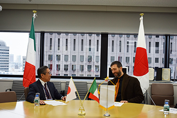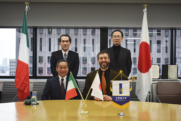 2月22日、イタリアのヴェネチア建築大学からMatteo Dario Paolucci教授が学長室に表敬訪問されました。Matteo Dario Paolucci教授はAlberto Ferlenga総長のサイン入りの協定書をもって来日され、佐藤学長が署名したものをお渡ししました。