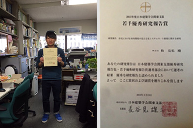 受賞者のコメントこのたび、日本建築学会関東支部において、若手優秀・優秀研究報告賞を二つ頂くことができ、大変光栄であります。研究の実施に際しては、指導教員の中島裕輔先生をはじめ、サイバー工房の石田様、実験に携わって下さった方々、および関係各位より多大なご指導ご鞭撻を賜りました。この場をお借りして深謝申し上げます。