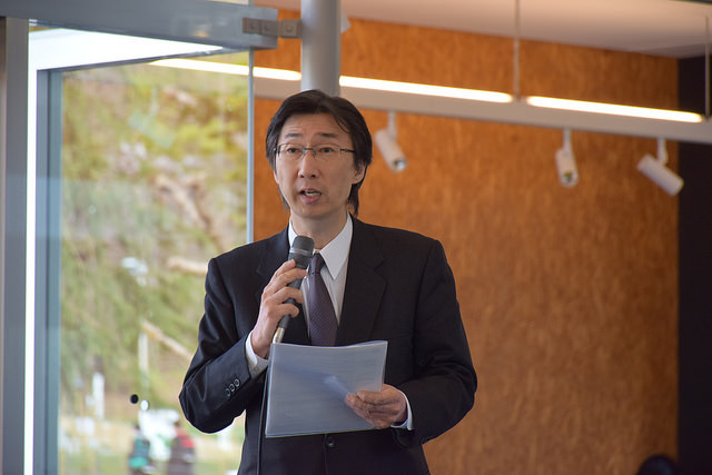 15時から始まった締結式では、冒頭に鷹野一朗教授(副学長・総合研究所所長)より協定の内容についての説明がありました。