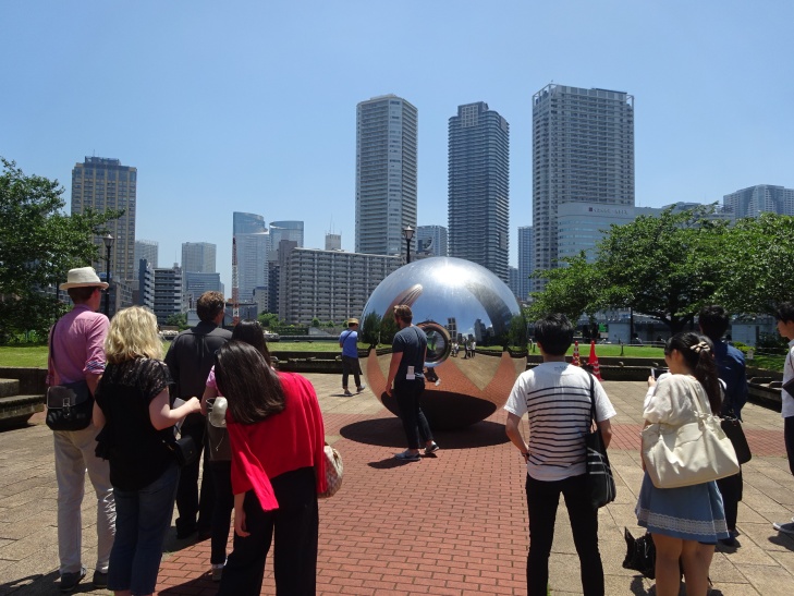 本プログラムは、UWMのマット教授と本学建築学部小林直弘助教が中心となり実施、初日は、移転を目前に控えた80年以上の歴史を持つ築地市場を舞台とし、同場所の情報発信拠点である食まちスタジオにて英語のレクチャーを受けたあと、専門家も交えて「まちあるき」を行いました。