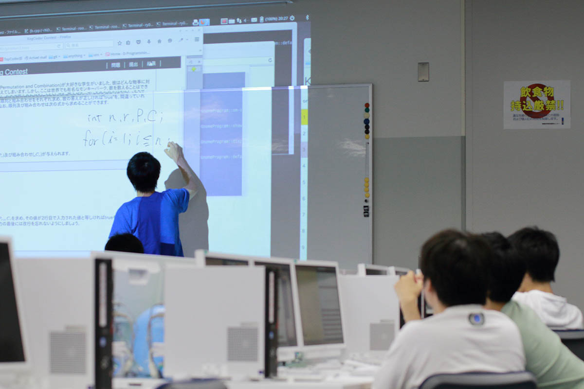 競技プログラミングを通して他大学の競技プログラマーとプログラミングの能力を競い合います。プログラミングに取り組みながら、アルゴリズムやデータ構造などの専門知識をメンバー全員で身につけます