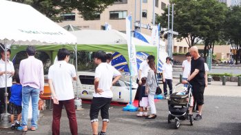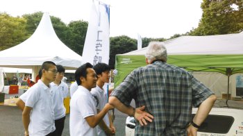 本学のブースには、展示されたソーラーカー車両に興味深そうに近づく親子連れや外国人観光客らで賑わいました。