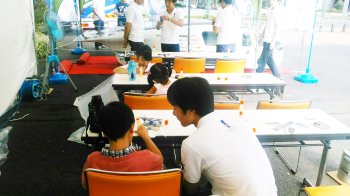 新宿中央公園を会場に、ソーラーカー実車の展示とペーパークラフトの製作などを行いました。