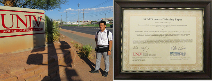 田村雅紀教授(建築学科)が、2016年8月10日アメリカ・ラスベガスにて開催された、第4回サステイナブル建設材料・技術に関する国際会議(SCMT4:The Fourth International Conference on Sustainable Construction Materials and Technologies)にて、Experimental Study on Conservation and Preservation for histrical Architecture using Plaster Finishing Material と題した論文(著者:岡健太郎、田村雅紀、後藤治、丸山紘明、横島順一)を投稿し、査読審査を経た後の査読点の評価により、優れた内容の論文であるとしてWinning Paper賞を受賞し、表彰状が贈呈されました。