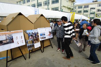 10月23日、工学院大学は、「平成28年八王子市総合防災訓練」に出展参加し、「ダンボールシェルター3」と熊本地震支援活動紹介パネルを展示しました。