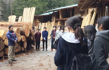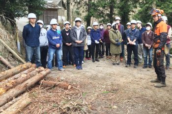 プロジェクト始動に伴い、2016年3月に桧原村(東京都西多摩郡)で間伐の現場や製材工場の見学を行いました。