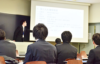 成果報告会には、受入れ機関の関係者も出席され、学生達は、研修先で学んだ成果を発表し、受入機関のご担当者からの質問にも熱心に応答していました。