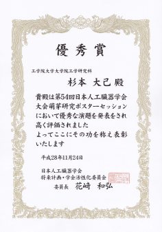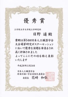 2016年11月24日に開催された日本人工臓器学会において、機械工学専攻生2名が萌芽研究ポスター賞を受賞しました。