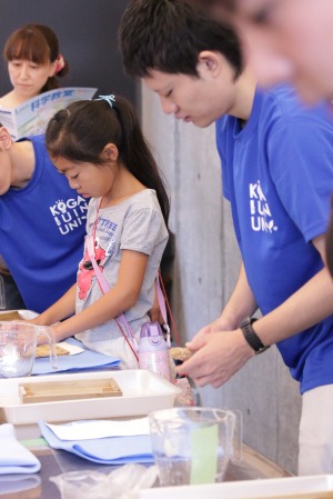 大学の環境ISO学生委員会は、「紙抄き」を体験できるコーナーを設けます(12月10日のみ)。森のサイクルと紙のサイクルについて、学生が説明し、来場者のハガキ作成体験をサポートします。紙抄きの技術指導と材料は、三菱製紙株式会社と三菱製紙販売株式会社が協力。同社との産学連携のきっかけが、「エコプロダクツ2015」出展であることから、この1年間の活動をパネルで説明します。