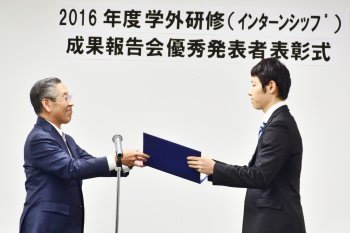 表彰された学生からは「学外研修で得た経験を今後の卒業研究や就職活動に活かして行きたい」「学外研修は貴重な時間で、毎日が刺激的で、得るものが大きかった」「研修後に振り返りの機会があったので、学外研修で得た効果を改めてゆっくり振り返り、検証することができた」との感想が寄せられました。