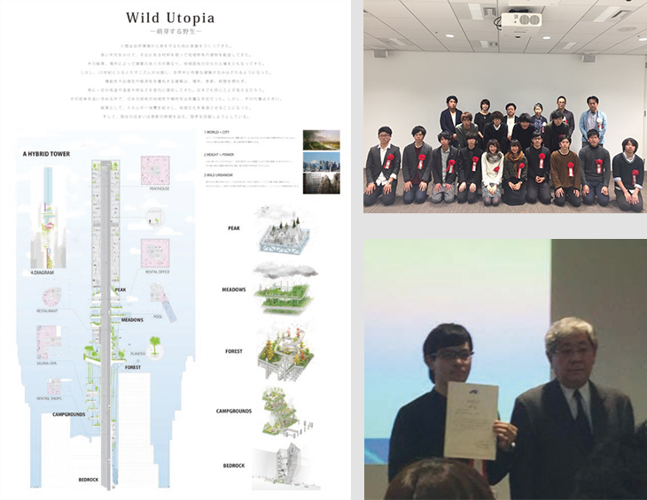 2016年11月26日に開催された公益社団法人日本建築家協会東海支部・一般社団法人日本建築学会東海支部主催「第33回 JIA東海支部設計競技」において、建築学専攻2年(澤岡研究室)﨑山 涼さんが「Wild Utopia —萌芽する野生—」による研究発表で、銅賞を受賞しました。