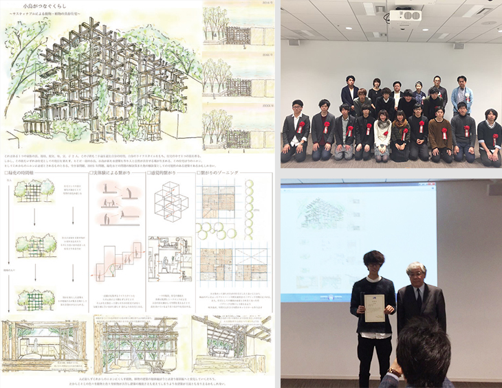 2016年11月26日に開催された公益社団法人日本建築家協会東海支部・一般社団法人日本建築学会東海支部主催「第33回 JIA東海支部設計競技」において、建築デザイン学科3年(澤岡研究室)廣川大樹さんが「小鳥がつなぐくらし~サスティナブルによる動物・植物の共存住宅~」による研究発表で、学生賞を受賞しました。