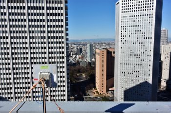 <内容> 新宿中央公園においてドローンを飛行させ、工学院大学までの距離約550mおよび、新宿区役所までの距離