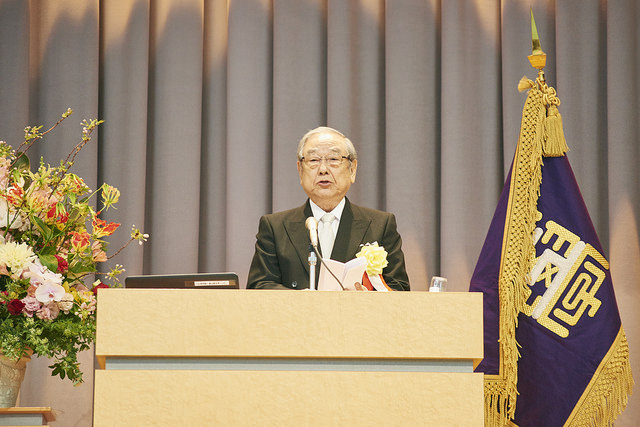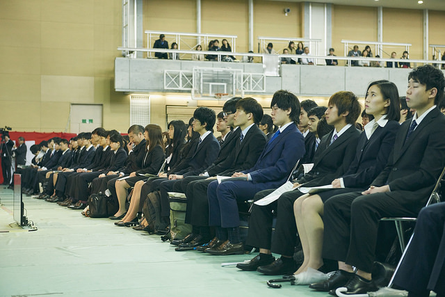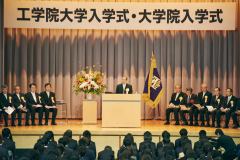 午前の部は、先進工学部、建築学部、大学院 化学応用学専攻、建築学専攻、システムデザイン専攻が、午後の部では、工学部、情報学部、大学院 機械工学専攻、電気・電子工学専攻、情報学専攻の新入生約1,700名が列席しました。